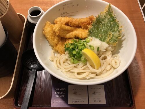 【カタトソデ】とり天ぶっかけうどん(冷)780円東京都港区新橋2丁目東口地下街1号 ウイング新橋B1店舗営業時間:(平日)7:00~23:00(土日祝)9:00~22:30※16:00~17:00は一時閉店いたします。※ラストオーダーは閉店30分前です。 新橋駅の地下んとこ…
